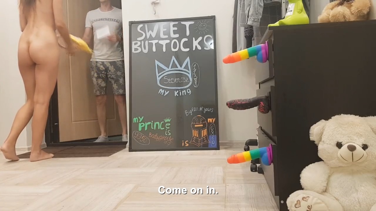 Загрузка видео Русская девушка удивила курьера, открыв ему дверь голой