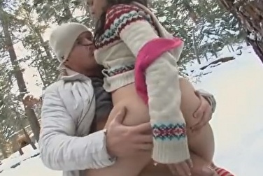 Взял стройную девушку на руки и вытрахал на морозе